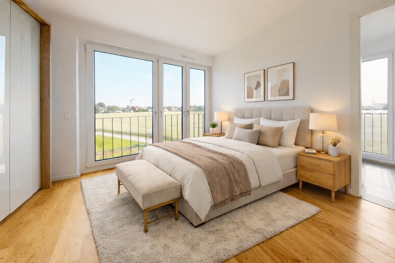 Die Wohnung verfügt über mehrere gut proportionierte Zimmer, die flexibel als Schlaf-, Arbeits- oder Gästezimmer genutzt werden können. Hochwertige Parkettböden, eine moderne Fußbodenheizung sowie eine energieeffiziente Bauweise sorgen für zeitgemäßen Wohnkomfort. Zwei vollwertige Bäder, darunter ein modernes Masterbad mit bodengleicher Walk-in-Dusche, unterstreichen den gehobenen Anspruch dieser Immobilie.